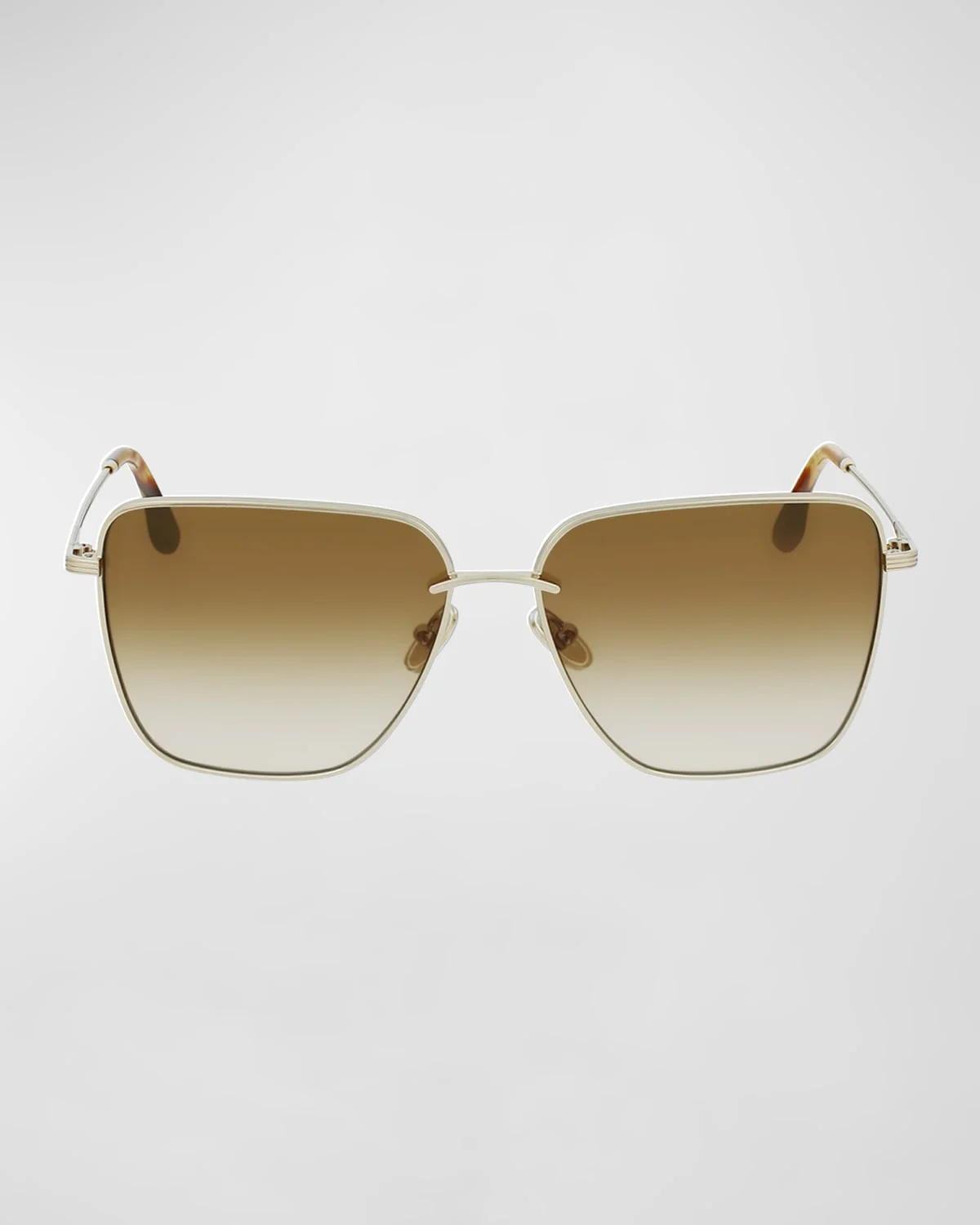 Victoria Beckham "Groove" square sunglasses in metal Lens/bridge/temple (in mm): 6115140 Gradient lenses Adjustable nose pads Thin, tapered arms Capped earpieces Wipe clean 100% UVA/UVB protection Made in Italy