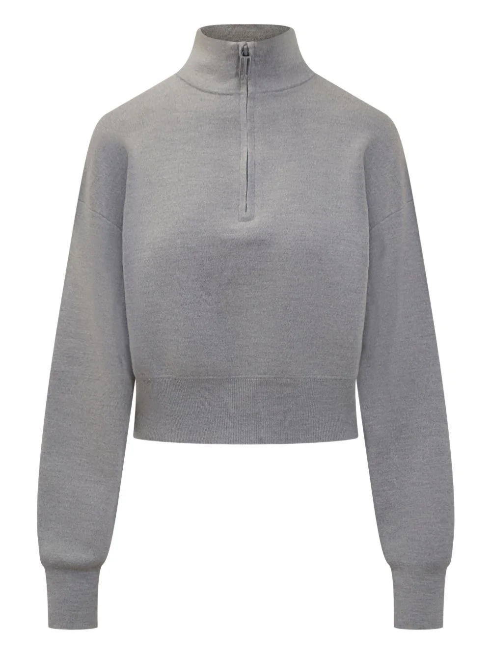 half-zip sweater Highlights - Grey - Half-zip fastening - High neck - Long sleeves - Ribbed hem Imported Composition Wool 82%, Polyamide 16%, Elastane 2% Washing instructions Read Manufacturer Guidelines