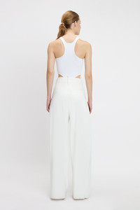Playful and provocative, the High Leg Bodysuit in White has a dramatic high-cut leg, scoop neckline and racerback finish. Crafted from a compact ribbed jersey for a body-hugging silhouette, it has adjustable clasp closures for comfort and a tonal Victoria Beckham logo at the back of the neck. Styled with the Wide Leg Pleat Detail Trouser & PVC Heel Product Details - Scooped neckline - Extreme high cut leg - Racer back style - Compact ribbed jersey - Bodysuit with adjustable snap closure - Tonal VB branding at centre back neck - Fits true to size, take your regular size - The model height is 5'10''/179cm and is wearing a size S - 95% Cotton 5% Elastane - Machine wash 30C, wash inside out - Made in Portugal