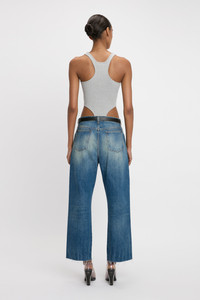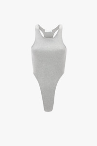 Unapologetically sexy, the High Leg Body Bodysuit has a dramatic high-cut leg, scoop neckline and racerback finish. Crafted from a compact ribbed jersey for a body-hugging silhouette, it has adjustable clasp closures for comfort and a tonal Victoria Beckham logo at the back of the neck. Presented in versatile Grey Marl, it is a foundational piece for any wardrobe. Styled with the Relaxed Curved Jean & Frame Belt Product Details - Scooped neckline - Extreme high cut leg - Racer back style - Compact ribbed jersey - Bodysuit with adjustable snap closure - Tonal VB branding at centre back neck - Fits true to size, take your regular size - The Model height is 5’11’’/ 180cm and is wearing a size S - 95% Cotton 5% Elastane - Machine wash 30C, wash inside out - Made in Portugal