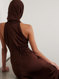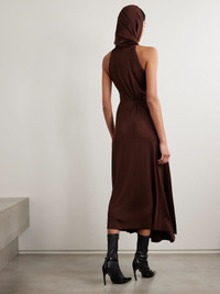Hooded stretch-jersey midi dress Brown