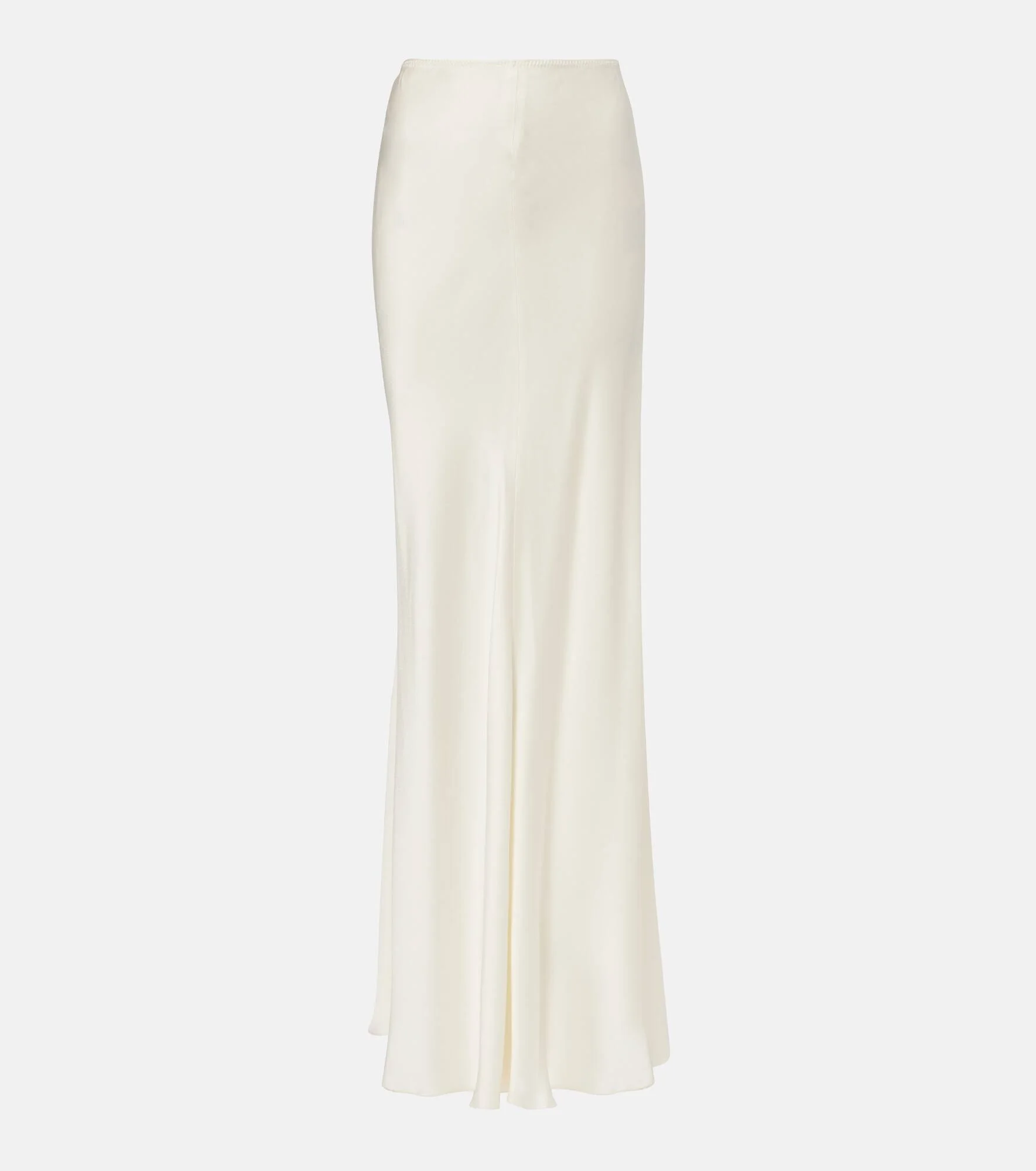 Victoria Beckham's eponymous label centers around chicly understated styles to create a versatile wardrobe. Crafted with a flowing, ultra-long silhouette, this maxi skirt features a flattering high-rise waist with invisible zipper closure. Product Details - Material: 71% acetate, 29% viscose - Care instructions: dry clean - Made in the UK - Designer color name: Ivory - Item color: white - Closure: invisible zipper - Item number: P01044237 Size & Fit - True to size - Non-stretchy fabric - High-waisted - The model seen in the picture is 178cm-5'10" and wearing a size UK 8
