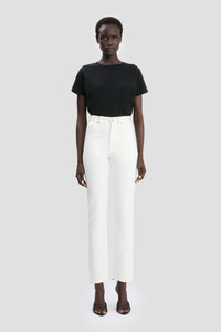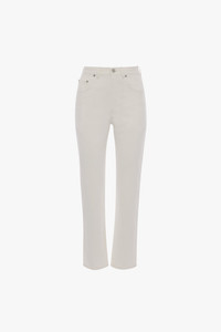 Crafted from non-stretch, mid-weight denim, these flattering high-rise jeans have a straight leg and cropped hemline. Presented in Washed White for a contemporary take on the utilitarian favourite, they have a traditional five-pocket design and tonal topstitching for an elevated finishing touch. Size & Fit - Fits true to size, take your normal size - The model is 5'10’’/178cm and is wearing a size 25 Product Details - Slim washed white jean - High rise - Cropped, fitted straight leg - Non-stretch, mid-weight denim - Five pocket detailing - Front zip fly - Branded leather patch and denim shank button - Tonal topstitching - 100% Cotton - Made in Italy