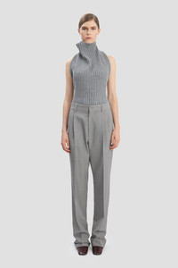 A directional waistband, sitting high at the back and lower at the front, brings a contemporary edge to these grain de poudre trousers. Inspired by traditional menswear tailoring, the Drop-Waist Straight Leg Trouser has distinctive front leg pleats and back waist darts for a feminine inflection and is finished with traditional side seam pockets and belt loops. A highlight from the autumn/winter runway, it reflects the house’s contemporary flair. Size & Fit - The model height is 5'11’’/180cm and is wearing a size 6 - Fits true to size, take your regular size Product Details - Grain de Poudre Melange straight leg trouser - Waist sits high at the back, drops lower at the front - Belt loops - Zip fly with double hook & bar closure - Side seam pockets - Front leg pleats - 100% Virgin Wool - Dry Clean Only - Made in Portugal