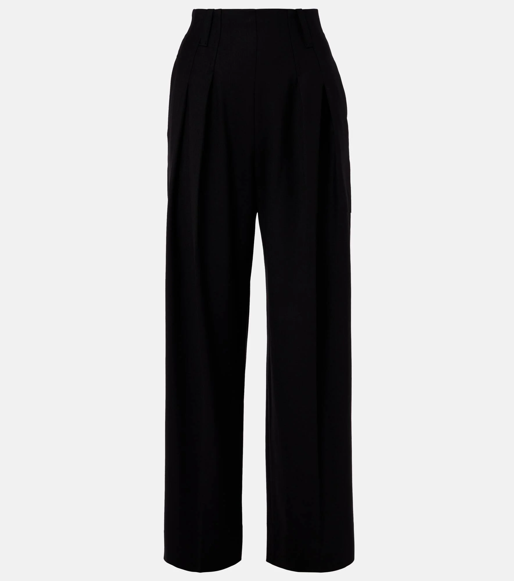 Victoria Beckham's eponymous label centers around chicly understated styles to create a versatile wardrobe. These pants come in a wide-leg silhouette that sits high on the waist and are complete with pleats down each leg. Product Details - Material: 53% polyester, 43% wool, 4% elastane - Care instructions: dry clean - Made in Portugal - Designer color name: Black - Item color: black - Lining: 85% polyamide, 15% elastane - Closure: zipped side - Double pleat - Belt loops - Pockets: side slit pockets, back pockets - Item number: P01053946 Size & Fit - Fits large to size - we recommend trying one size smaller - Non-stretchy fabric - Wide-leg - High-waisted - The model seen in the picture is 178cm-5'10" and wearing a size UK 6