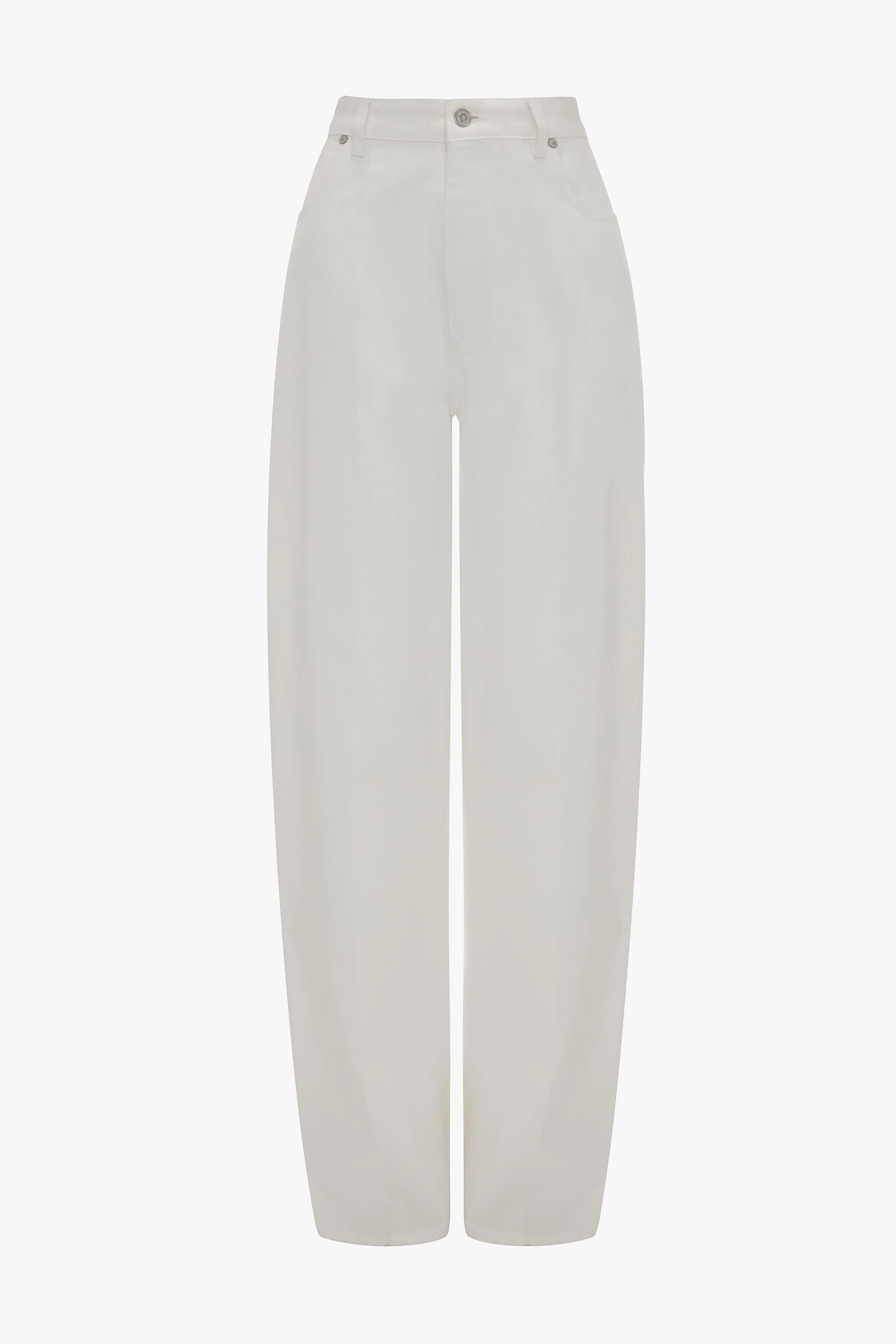 Balancing utilitarian references with traditional tailored detailing, the High Waisted Cinched Jean embodies the house’s artful blend of casual and sophisticated. Presented in Washed White, it has a wide straight-leg design, front dart details at the waist and creases through the centre legs. Tonal topstitching completes the look. Size & Fit - High waisted, relaxed leg fit - Inseam: 32”/ 82cm - Fits true to size, take your regular size Product Details - Washed white denim - High waisted with a low rise - Wide, straight leg design - Front dart detail at waist - Crease through centre of leg - Tonal topstitching details - Branded silver denim shank buttons - 100% Cotton - Machine wash at 30C - Made in Italy