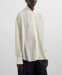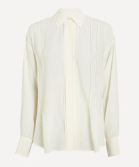 DETAILS Silk blouse Fits true to size Loose fit Dropped shoulders Long sleeves Buttoned cuffs Classic collar Front vertical pleats Concealed button fastening Rounded hem SIZE & FIT Model is 175cm/5'9"; Chest 75cm; Waist: 23.5cm; Hip: 33.5cm and wears a size 8 COMPOSITION & CARE 100% Silk Dry clean
