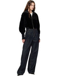 Black Zip Shearling Bomber Jacket