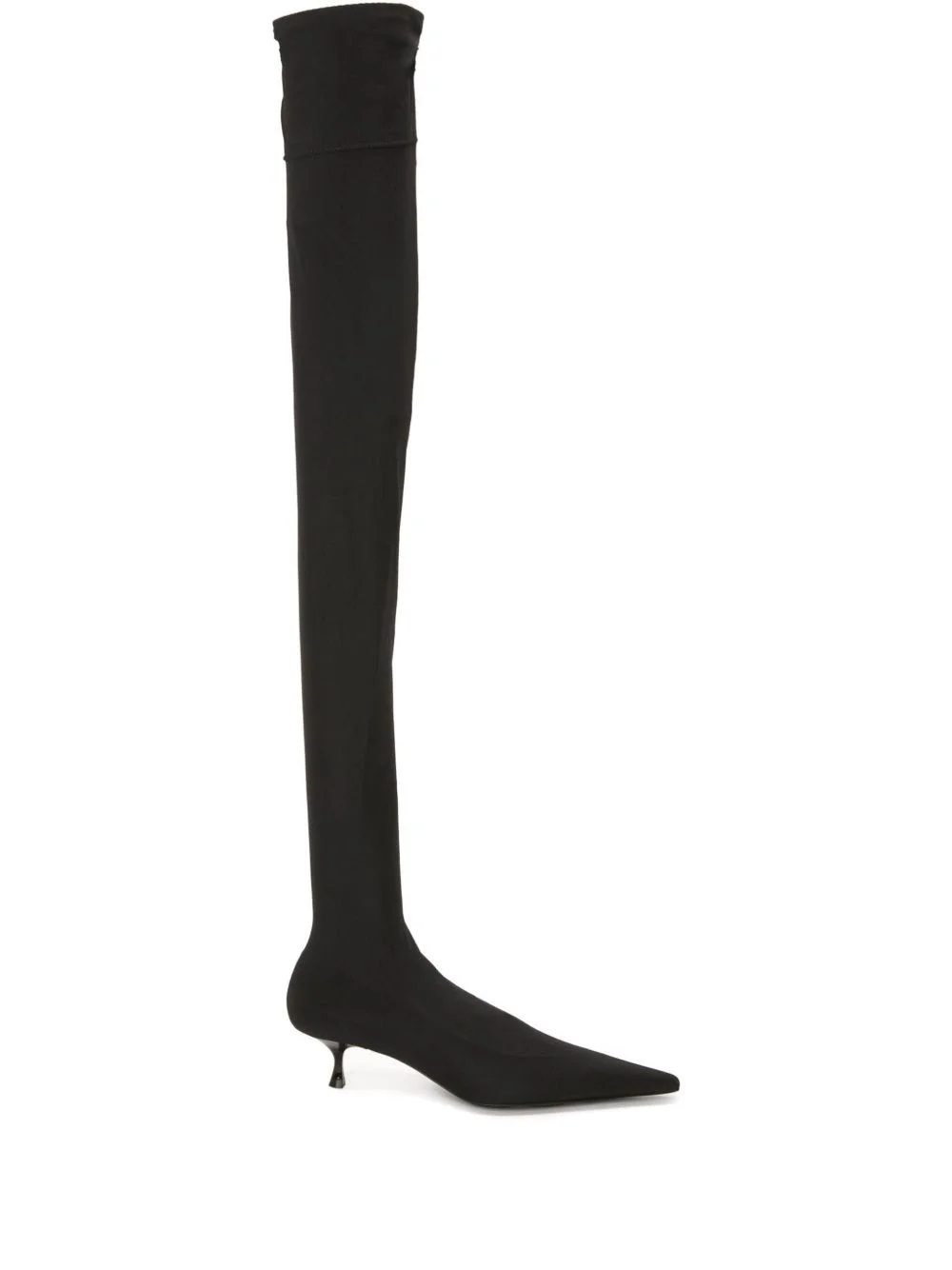 45mm Sloan jersey pointed-toe boots Highlights - Black - Pointed toe - Over-the-knee shaft - Low kitten heel - Pull on design Made in Italy Composition Outer: Fabric 100% Lining: Fabric 100%, Calf Leather 100% Sole: Calf Leather 100%, Rubber 100%