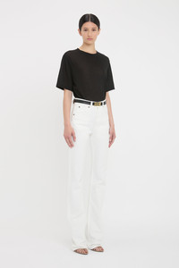 The Julia Jean is a house favourite, popular for its relaxed fit and laid-back look. Crafted from soft 100% cotton denim, it has a figure-flattering high waistline and an elongating straight leg. Presented in Washed White for SS25, it has discrete design details including a silver branded denim shank button and copper branded rivets, tobacco topstitching and a branded leather patch at the back of the waist. Product Details - High waist, straight leg silhouette - Tonal topstitch details - Branded leather patch on the waistband - Branded copper rivets - Silver branded denim shank button - Style is fitted over the hip, for a more relaxed fit customers may wish to size up - The model height is 5'10''/178cm and is wearing a size 6 - 100% Cotton - Machine wash at 30C - Made In Italy