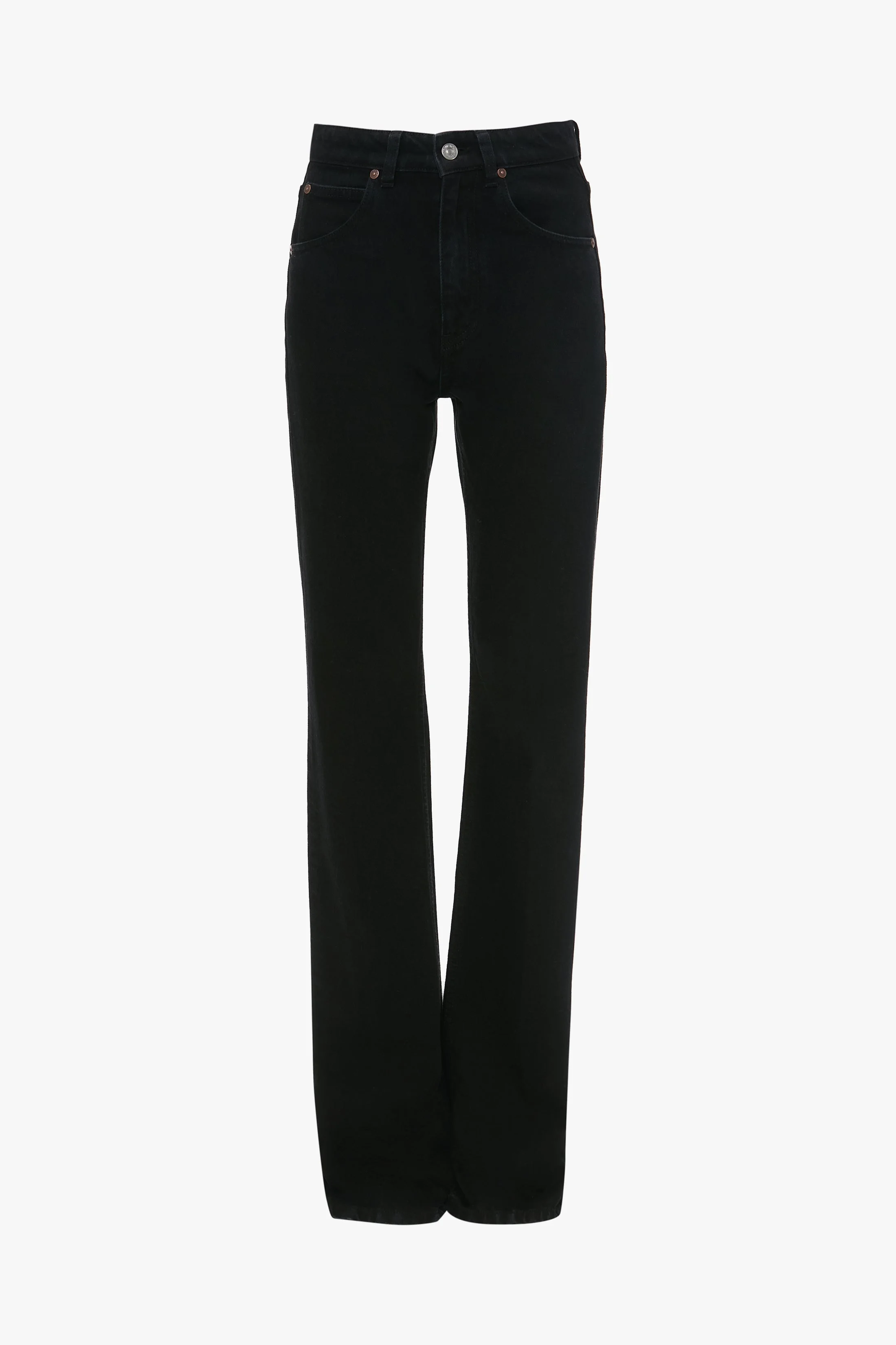 - Washed black, high rise, straight leg jean - High rise - Straight leg - Stretch mid-weight denim - 5 pocket styling - Front fly with zip with branded denim shank button - Branded leather patch on right back waistband - 100% Cotton - Machine wash at 30C - Made in Italy Characterised by a high waistline, straight leg and relaxed fit, the Julia is tailored for a casual but sophisticated look. A silver branded denim shank button and copper branded rivets, tobacco topstitching and a branded leather patch at the back of the waist reflect the house’s consistent attention to detail. SIZE & FIT - Style is designed to be tight fitting through the waist and hip - Fits true to size, for a more relaxed fit customers may wish to size up - The model height is 5'11’’/180cm and is wearing a size 25