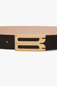 A favourite in the Victoria Beckham accessories archive, the Jumbo B Buckle Belt offers a contemporary twist on a wardrobe classic. Meticulously made in Italy from glossy Black calf leather, it has a gold-plated B Buckle detail for an elevated point of difference and is ideal for adding polish to utilitarian denim or pared-back separates. Size & Fit - Fits true to size, take your regular size - Small: Length 70cm, Width 38mm - Medium: Length 80cm, Width 38mm - Large: Length 90cm, Width 38mm - X large: Length 100cm, Width 38mm Product Details - Smooth black calf leather - Luxury gold plated hardware - 100% Leather - Wipe clean with a soft, dry cloth - Made In Italy