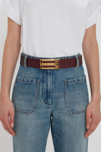- Smooth Calf Leather - Luxury gold plated hardware - 100% Calf Leather - Wipe clean with a soft, dry cloth - Made In Italy Add a contemporary point of difference to your new-season wardrobe with the Jumbo Dorian Belt, presented in a subdued shade of Burgundy for the new season. Crafted from smooth calf leather and embellished with gold hardware for an elevated finish, it will bring a sophisticated finishing touch to any outfit. SIZE & FIT - Small: Length: 70cm, Width: 38mm - Medium: 80cm, Width: 38mm - Large: 90cm, Width: 38mm - X large: 100cm, Width 38mm - Fits true to size, take your regular size