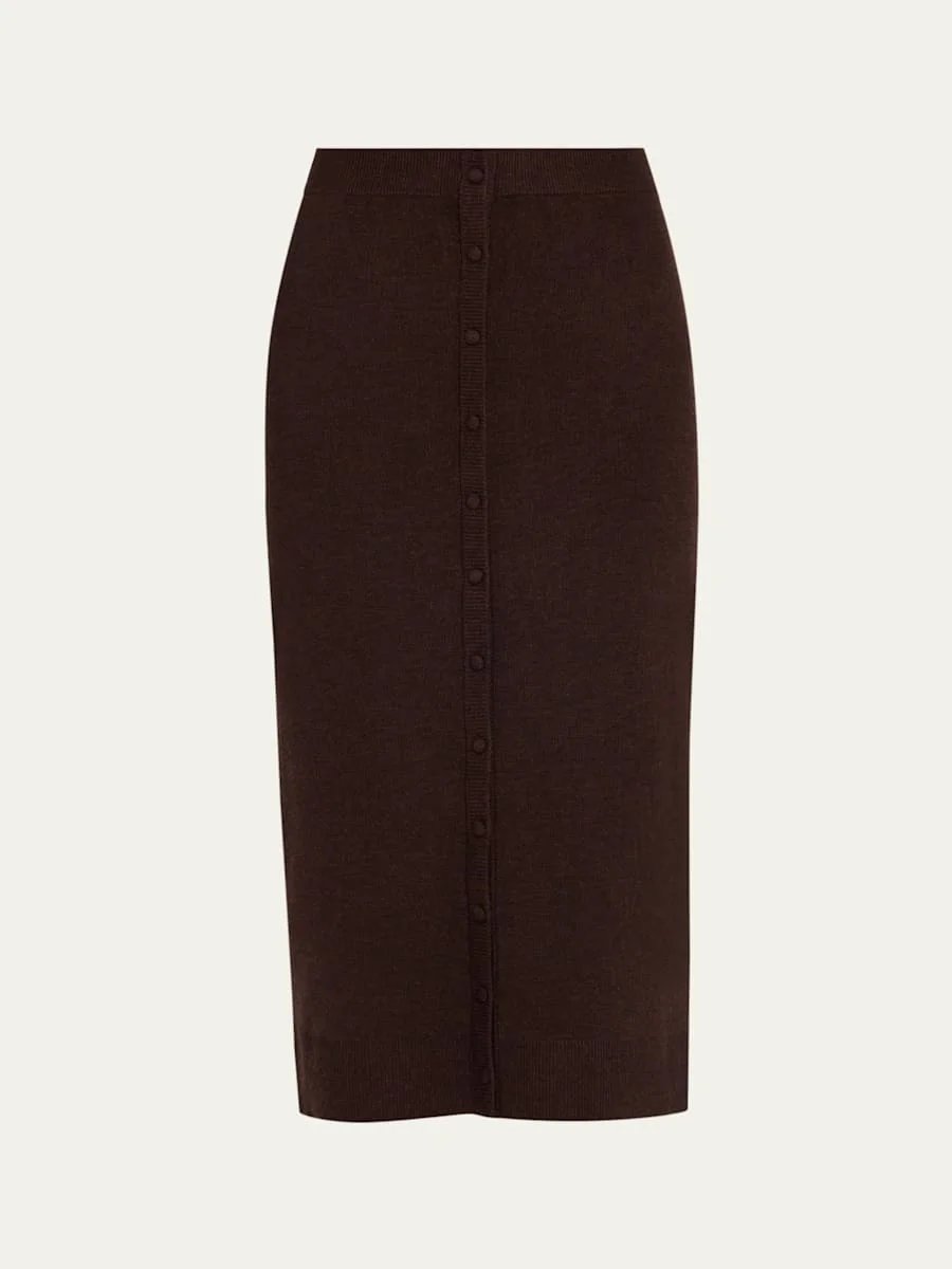 Knit Button Detail Midi Skirt