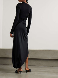 Knotted draped jersey midi dress