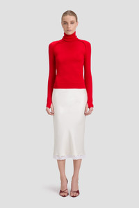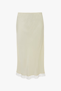Effortlessly elegant, the Lace Trim Slip Skirt has a pull-on design with elasticated waist for comfort and ease. A pretty lace trim at the hemline punctuates the pared-bared aesthetic and adds a coquettishness that is subtle but sexy. The nostalgic shade of Ivory brings a restrained romanticism to the piece. Styled with the High Neck Top & Harlow Stiletto Size & Fit - Fits true to size, take your regular size Product Details - Slip on skirt with elasticated waist - Contrast lace trim at hem - 71% Acetate 29% Viscose - Dry clean only - Made in Portugal