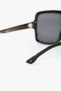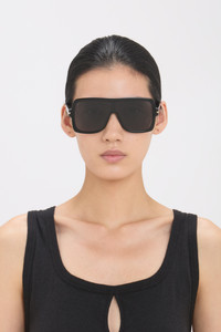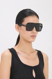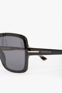 - Timeless and flattering shape - Acetate in Iconic Black - V-cut logo - Made in China Defined by their squared flat mask, these sunglasses are crafted in acetate and presented in classic Black with contrasting grey lenses. They are embellished with the house’s signature V-cut logo. SIZE & FIT - Width: 99mm - Temple Length: 1mm - Bridge Length: 140mm