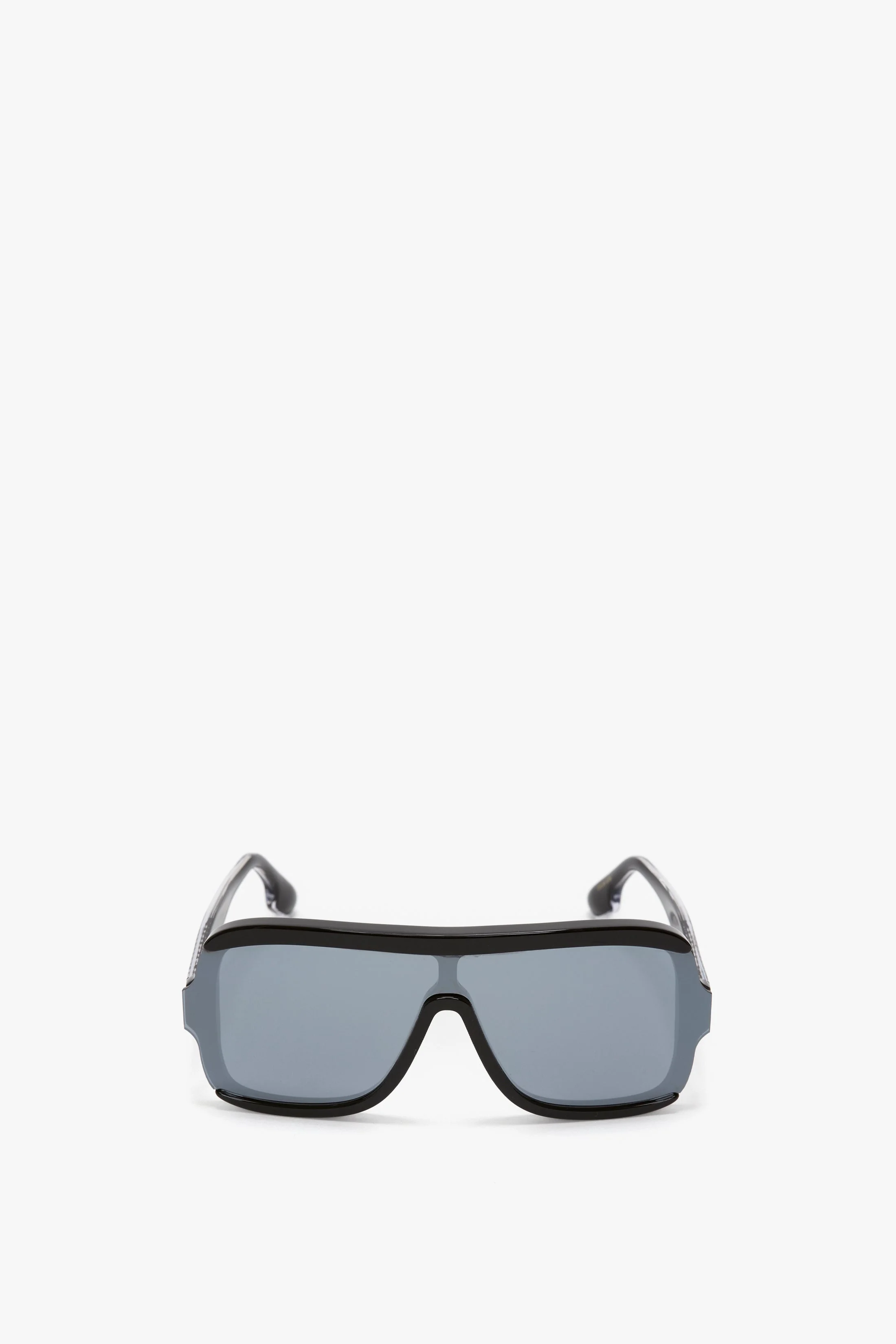 Layered Mask Sunglasses In Black-Silver-Mirror