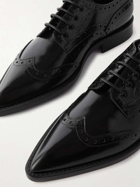 Traditional styles inform the design and details of Victoria Beckham's brogues. They're made from supple leather with practical block heels and an elegant point-toe profile. Note the classic wingtips that trace the uppers. Size & Fit - Fits true to size, take your normal size - Only available in full sizes, go down to the nearest whole size if you take a half size - Italian sizing Details & Care - Heel measures approximately 20mm/ 1 inch - Black leather (Calf) - Lace-up