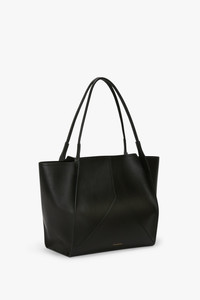 New to the Victoria leather goods family, the Victoria Tote is defined by cleans lines and discreet V stitched panels. Crafted in Italy from soft calf leather and presented in classic Black, it expresses the house’s contemporary design language. Featuring signature gold branding, including a Victoria Beckham logo and unique serial code, inside the bag, the Victoria Tote is finished with a tactile suede bonded lining. Modern and minimal, it is an ideal accessory for everyday wear. Size & Fit - Height: 38cm, Width: 48cm , Depth: 23cm, Drop With Strap: 28cm Product Details - Soft calf body - Suede bonded lining - Internal flat pocket - Features our signature gold branding with VB logo and a unique code - 100% Calf Leather - On calf leathers, regularly apply a small amount of nourishing cream and buff gently using a cloth - Made in Italy