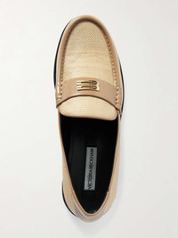 EDITORS'NOTES Victoria Beckham re-imagines classic loafers for the warm weather, creating this pair from breathable raffia. Trimmed with supple leather, they have traditional penny slots and feature the gold-tone logo plaque. SIZE & FIT - Fits true to size, take your normal size - Italian sizing DETAILS & CARE - Slight heel - Beige raffia and leather (Calf) - Slip on