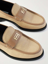 Leather-trimmed raffia loafers Beige