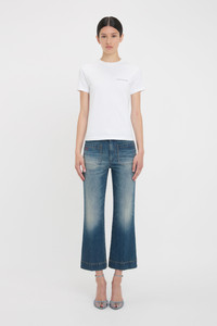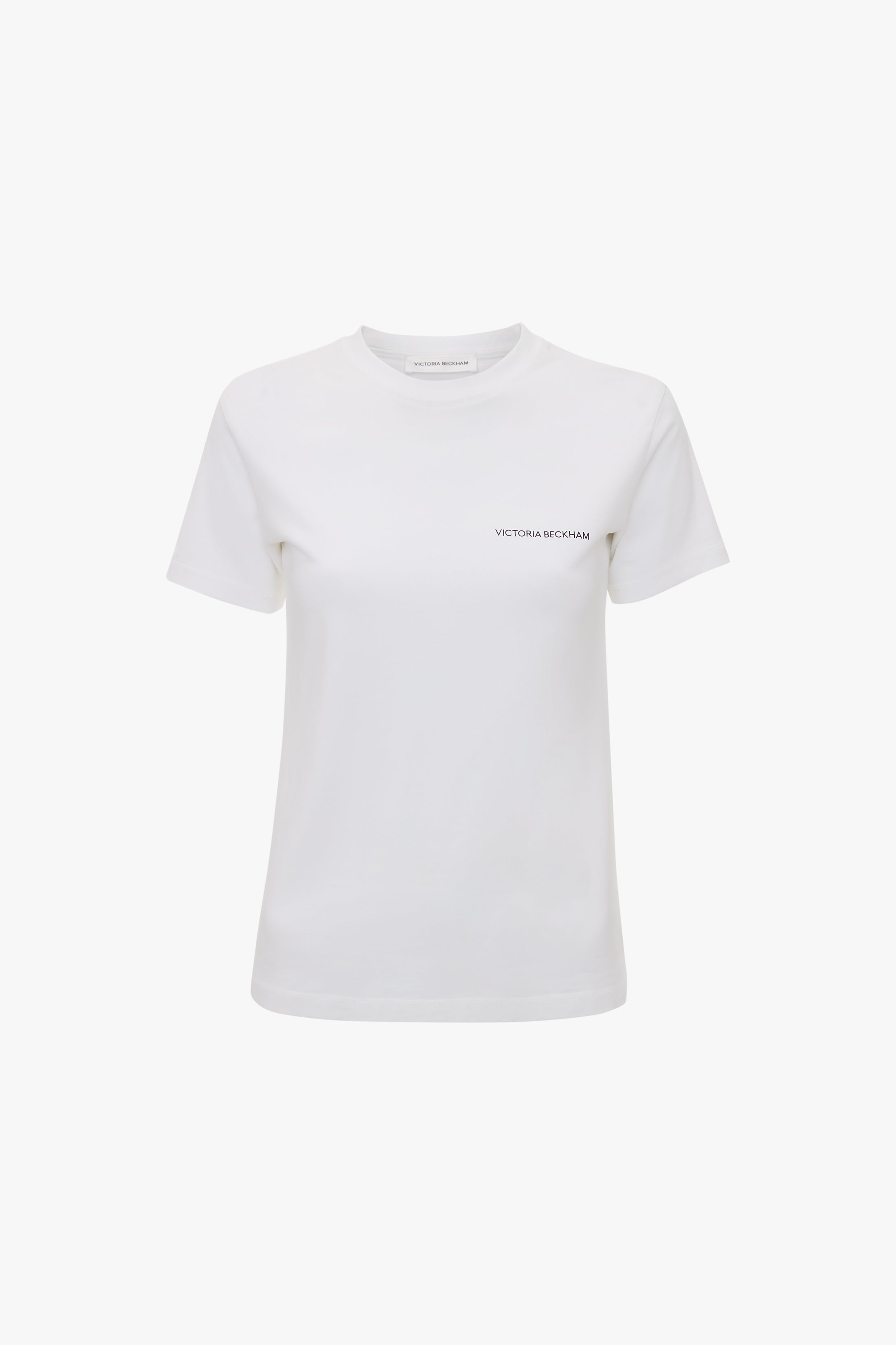 Crafted from 100% organic cotton for comfort and breathability, the Shrunken Logo Tee has a round neckline and slim-fitting silhouette. A contrasting Victoria Beckham logo in sophisticated white on the left front chest adds an attractive design feature. Size & Fit - Slim silhouette - Round neckline Product Details - Contrast Victoria Beckham logo print at wearers left front chest - Staple piece - Main: 100% Organic Cotton. Trim: 95% Organic Cotton 5% Elastane - Machine Wash 30C - Made in Portugal