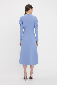 The house’s signature Dolman Midi Dress is refreshed in a delicate shade of Bluebell for SS25. Crafted from a fluid cady fabric for a refined silhouette, it has modest long sleeves, a discreet round neckline and elegantly defined waist. Concealed zips at the wrist and a voluminous underarm drape add a contemporary sophistication, while tonal topstitching brings visual interest. Size & Fit - Fits true to size, take your regular size - Fitted at the waist and more relaxed fit through bodice and hip - The model height is 5'10''/179cm and is wearing a size 6 Product Details - Dolman sleeve - Draped feature at sleeve underarm, fitted sleeve through the forearm - Midi length silhouette - Tonal topstitching - Concealed zip opening at cuff - 50% Viscose 47% Acetate 3% Elastane - Dry clean only - Made In Lithuania