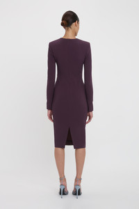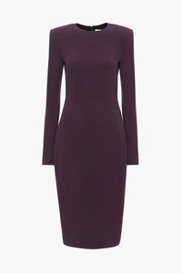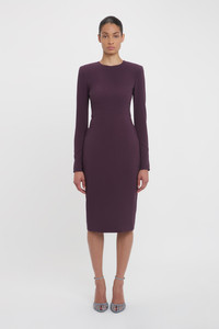 Understated elegance defines the house’s signature T-Shirt dresses. Reimagined in a luxurious shade of Fig for SS25, the Long Sleeve T-Shirt Fitted Dress has an hourglass shape with structured shoulders for a beautifully proportioned silhouette. Crafted from a comfortable stretch wool and with a modest round neckline and midi-length hemline, it is a foundational piece for the new season. Styled with the Open Toe Cage Sandal Size & Fit - Fits true to size, take your regular size - The model height is 5'10''/178cm and is wearing a size 6 Product Details - Stretch wool fabrication - Round neckline - Fitted silhouette through body and sleeve - Shoulder pads - Topstitch details to darts - Stretch jersey lining in bodice and sleeves - 89% Wool 7% Polyamide 4% Elastane - Dry clean only - Made In Lithuania