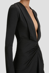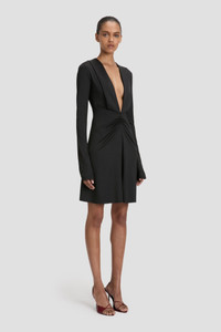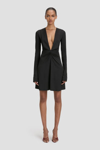 The traditional LBD is reconsidered with a daring plunge neckline in the Long Sleeve V-Neck Mini Dress. Crafted from stretch jersey for a body-skimming silhouette, it has modest long sleeves and a playfully high hemline, imbuing it with a polished and provocative personality. Finished with a V-shape seam at the waist and front ruching, it marries classic and contemporary references beautifully. Styled with the Harlow Stiletto Sandal Size & Fit - Fits true to size, take your regular size. - The model height is 5'11"/180cm and is wearing a size 6 Product Details - Stretch jersey - Low plunge v neckline - V shape waist seam with ruching - Mini length - Long sleeve - 90% Polyester 10% Elastane - Dry clean only - Made in Portugal
