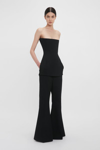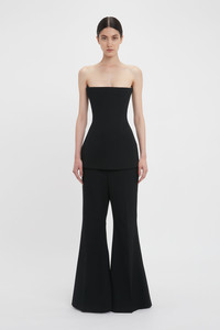 An exaggerated flared hem injects traditional tailoring with fresh energy. A favourite from the AW24 runway and one of Victoria’s personal highlights, the Wide Leg Kick Trouser in classic Black has a fitted low-rise waist, side seam pockets and a back welt pocket. Front and back leg creases add definition for a polished silhouette. Product Details - Fitted at lower waist - Low rise trouser - Wide leg with flared at hem - Zip fly front with hook & eye closure - Side seam pockets - Back welt pocket - Front and back leg creases - The model is 178cm and is wearing a size 6 - Main: 97% Virgin Wool 2% Polyamide 1% Elastane, Lining: 70% Cotton 30% Polyamide - Dry clean only - Made in Portugal