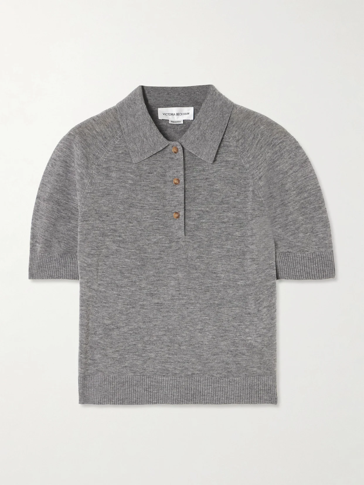 Victoria Beckham's polo shirt is knitted in a slim, gently cropped profile. It's ribbed at the cuffs and hem and finished with a logo tab on the back neck. Wear yours with everything from jeans to tailored or leather pants.