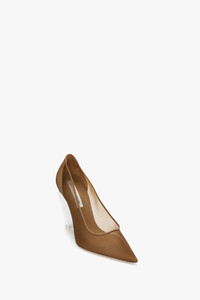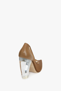 Crafted in Italy, the Transparent Heel Mesh Pump in Tan is a directional addition to the house’s footwear edit. With a sculptural curved heel hand-moulded from a block of transparent plexi, it has a statement silhouette complemented by a modern fine mesh upper. Finished with a soft nappa sole, it embodies the house’s contemporary sophistication. Size & Fit - Fits true to size, take your regular size - 105mm heel Product Details - Sculptural curved heel - Sole made of soft nappa leather - Fine mesh upper, see through - Made in Italy
