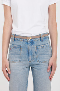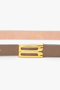 Understated refinement is a hallmark of the Victoria Beckham brand and it’s embodied in the Micro Frame Belt. With its streamlined silhouette, tactile grained leather fabrication and elegant Dove Grey colourway, it will add a polished finishing touch to utilitarian separates and masculine tailoring. Featuring the house’s signature gold hardware, it is a foundational piece for any wardrobe. Product Details - Smooth calf leather - Luxury gold plated hardware - Strap width: 20mm - Buckle: Height 17.5 mm Length 33.5 mm - 100% Calf leather - Wipe clean with a soft, dry cloth - Made In Italy