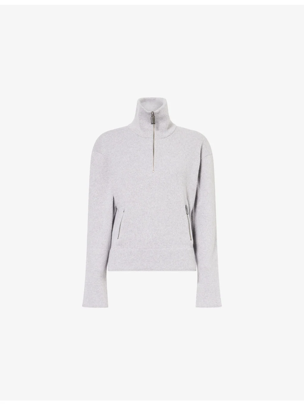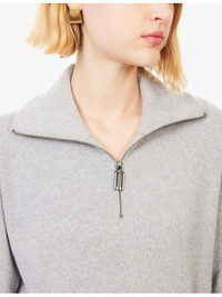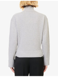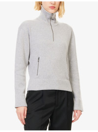 PRODUCT DETAILS - Victoria Beckham wool knit jumper - 70% merino wool, 30% cashmere - Zip fastening - Regular fit, high neck, long sleeves, zip trims, brushed texture - Dry clean - True to size - Model is 5ft 10in/1.78m and wears a size small - Midweight, stretchy Ref: R04553943