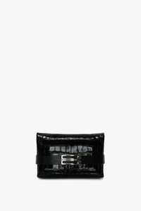 The Mini Chain Pouch silhouette is imbued with fresh personality by virtue of a B Buckle belt detail. Functional and decorative, the belt detail wraps around the body of the bag, holding the pouch securely closed. Exquisitely cut from calf leather with a supple embossed crocodile print, it is lined with tactile suede. A detachable crossbody strap makes this bag as practical as it is polished. Styled with the Asymmetric Ruffle Blouse, Wide Cropped Flare Trouser & Frame Stud Earrings Product Details - Our signature mini chain pouch silhouette reimagined with the B frame belt - Belt wraps around the bag to hold the pouch close. Functional closure, not just decorative - Crossbody strap is detachable, so the bag can be worn in multiple ways - The main body of the bag is made of supple and luxurious embossed calf leather - Lined in Suede - Internal divider - Height:13cm Width:19cm Depth: 8cm Drop: 51cm - Made in Italy