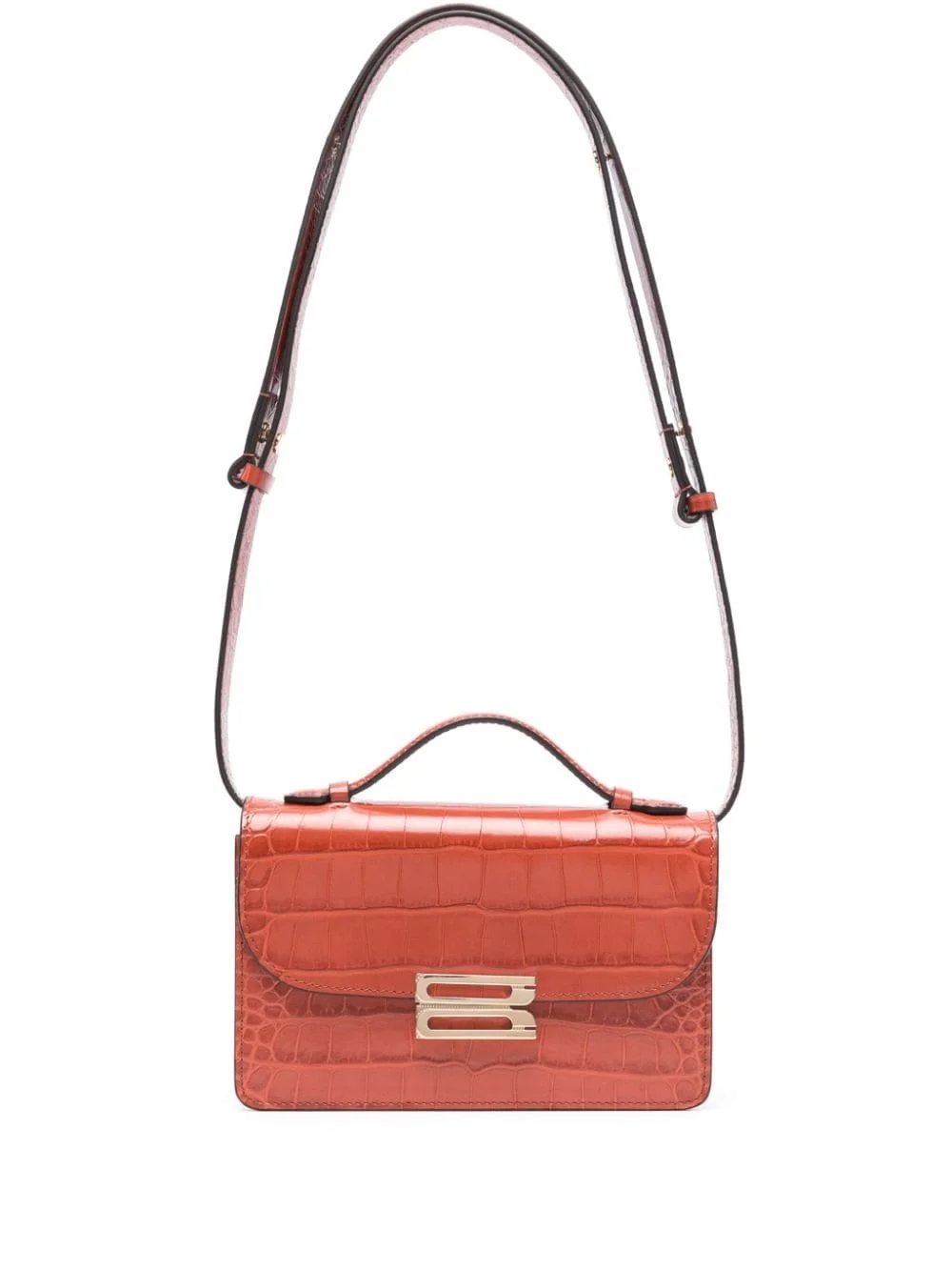mini Dorian shoulder bag Highlights - Dark orange - Calf leather - Embossed crocodile effect - Foldover top with magnetic fastening - Adjustable detachable shoulder strap - Logo plaque - Logo stamp to the rear - Partitioned compartment - Internal logo stamp - Internal card slot - Full lining - This piece comes complete with a protective dust bag. Made in Italy Composition Outer: Calf Leather 100% SIZE & FIT Model measurements Height 5 ft 9 in(1.75 m) Bust/Chest 31.88 in(81 cm) Hips 34.64 in(88 cm) Waist 24.01 in(61 cm) Measurement DEPTH 3.54 in(9 cm) HEIGHT 5.11 in(13 cm) WIDTH 7.87 in(20 cm)