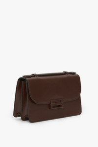 A diminutive version of the Tonal Dorian Bag, the Mini in Dark Brown smooth calf leather retains all of this iconic style’s traditional features, including the B Frame split-lock hardware with tonal matte finish, a removable and adjustable ‘smart strap’ and snap buttons for versatile styling as a shoulder or crossbody bag, microsuede lining, internal double compartment and small flat leather pocket. Referencing London’s leather goods heritage while reimagining traditional masculine design codes, it is a sophisticated addition to the Victoria Beckham leather goods archive. Size & Fit - Height: 14cm, Width: 20cm, Depth: 8cm, Drop: 49cm - longest length. Drop: 27cm - Shortest length Product Details - Signature B frame split-lock hardware with new matt tonal finish - Shiny calf body - Smart strap with snap buttons allows for both shoulder and crossbody carry - Microsuede lining - Internal double compartment - Small internal flat leather pocket - Features our signature gold branding with VB logo and a unique code - 100% Calf Leather - On calf leathers, regularly apply a small amount of nourishing cream and buff gently using a cloth - Made in Italy