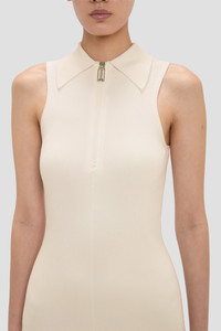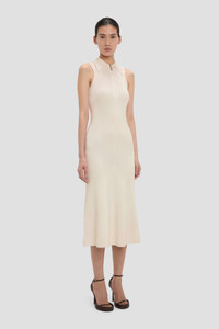 The Sleeveless Mira Midi Dress in Sandstone is crafted from a tactile rib stitch and defined by a sexy front zip fastening. A modest collared neckline and midi-length hemline bring polish to the provocative detailing. - Midi length - Viscose blend - Rib stitch - Collared neckline - Covered back - Sleeveless - Zip fastening - 65% Viscose 19% Nylon 16% Elastane - Dry clean only - Made in China SIZE & FIT - Fits true to size, take your normal size - The model height is 5'9½''/177cm and is wearing a size XS