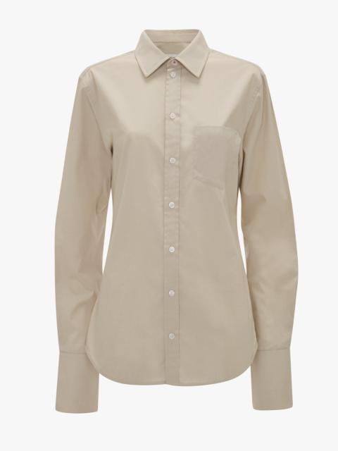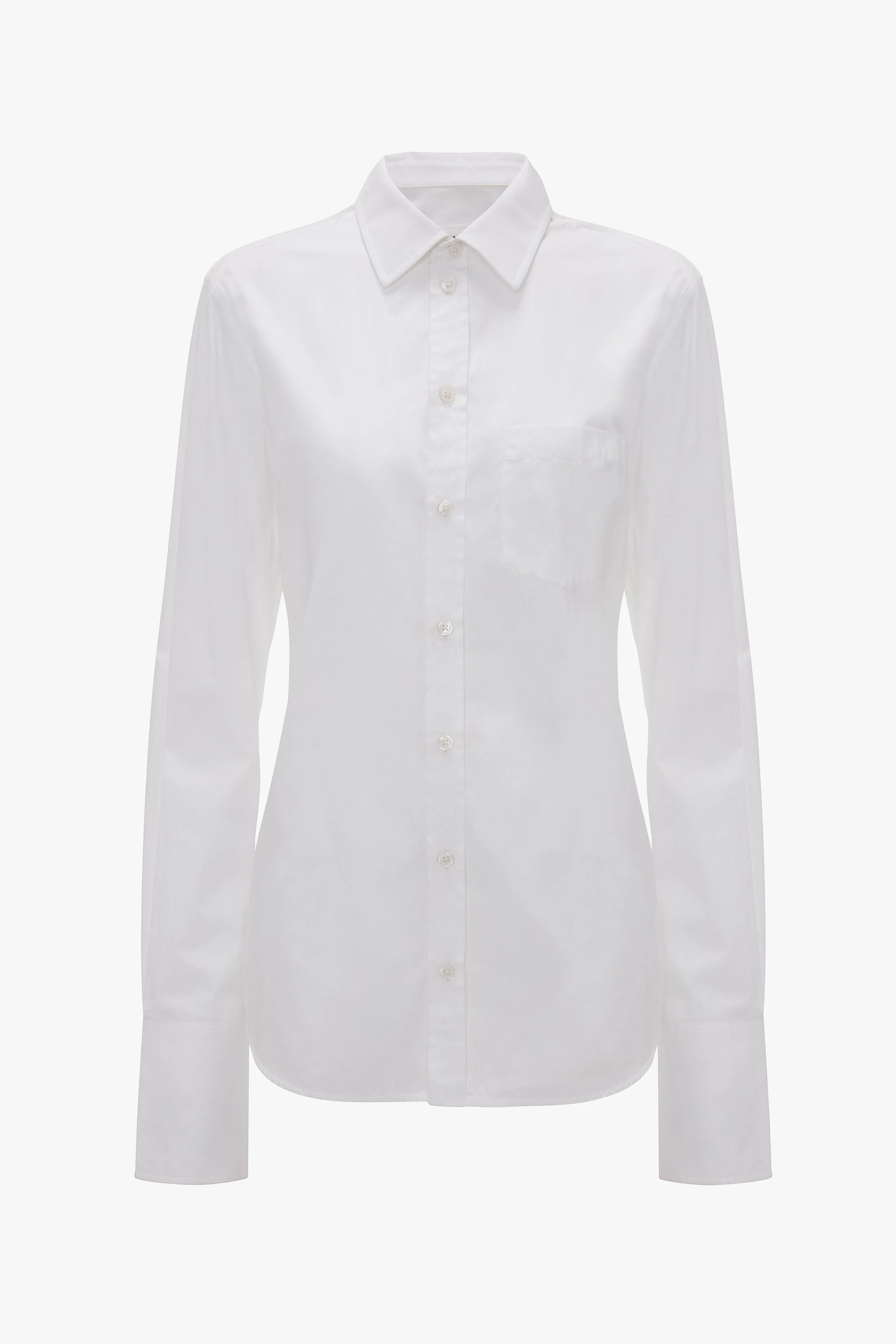 Made from 100% cotton, the Tab Detail Shirt is a wardrobe classic updated with considered design details. A martingale at the back of the waist adds subtle definition to the silhouette and creates an attractive visual feature, while an embroidered Victoria Beckham logo in a contrasting thread elevates the look further. A traditional collar, front-button fastening and chest pocket reference its masculine tailoring roots. Styled with the Cropped Trouser, Polo Neck & Sloan Mule Size & Fit - The model height is 5'10''/178cm and is wearing a size 8 - Fits true to size, take your regular size Product Details - Light cotton fabric - Chest pocket - Front button fastening - Button cuff - Collar neckline - VB embroidery in contrast thread - Back waist martigale detail - 100% Cotton - Dry clean only - Made in Turkey