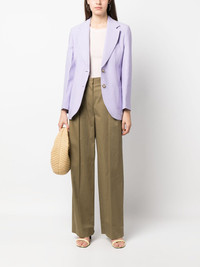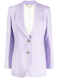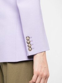 notched-lapels single-breasted blazer Highlights - Lavender purple - Notched lapels - Front button fastening - Chest welt pocket - Two front patch pockets - Buttoned-cuff sleeves - Long sleeves - American rear vent Imported Composition Lining: Viscose 100%, Cotton 70%, Polyester 30% Outer: Polyester 100%, Brass 100%, Viscose 88%, Virgin Wool 12% SIZE & FIT Model measurements Height 5 ft 11 in(1.8 m) Bust/Chest 31.49 in(80 cm) Hips 36.22 in(92 cm) Waist 25.59 in(65 cm) Measurement SLEEVE LENGTH 22.83 in(58 cm) LENGTH 28.34 in(72 cm) FittingInformation Designed for a slim fit that sits just away from the body offering a close yet comfortable fit The vented hem offers movement at the rear Made from a midweight non-stretch fabric This piece fits true to size – take your usual size Washing instructions Dry Clean Only