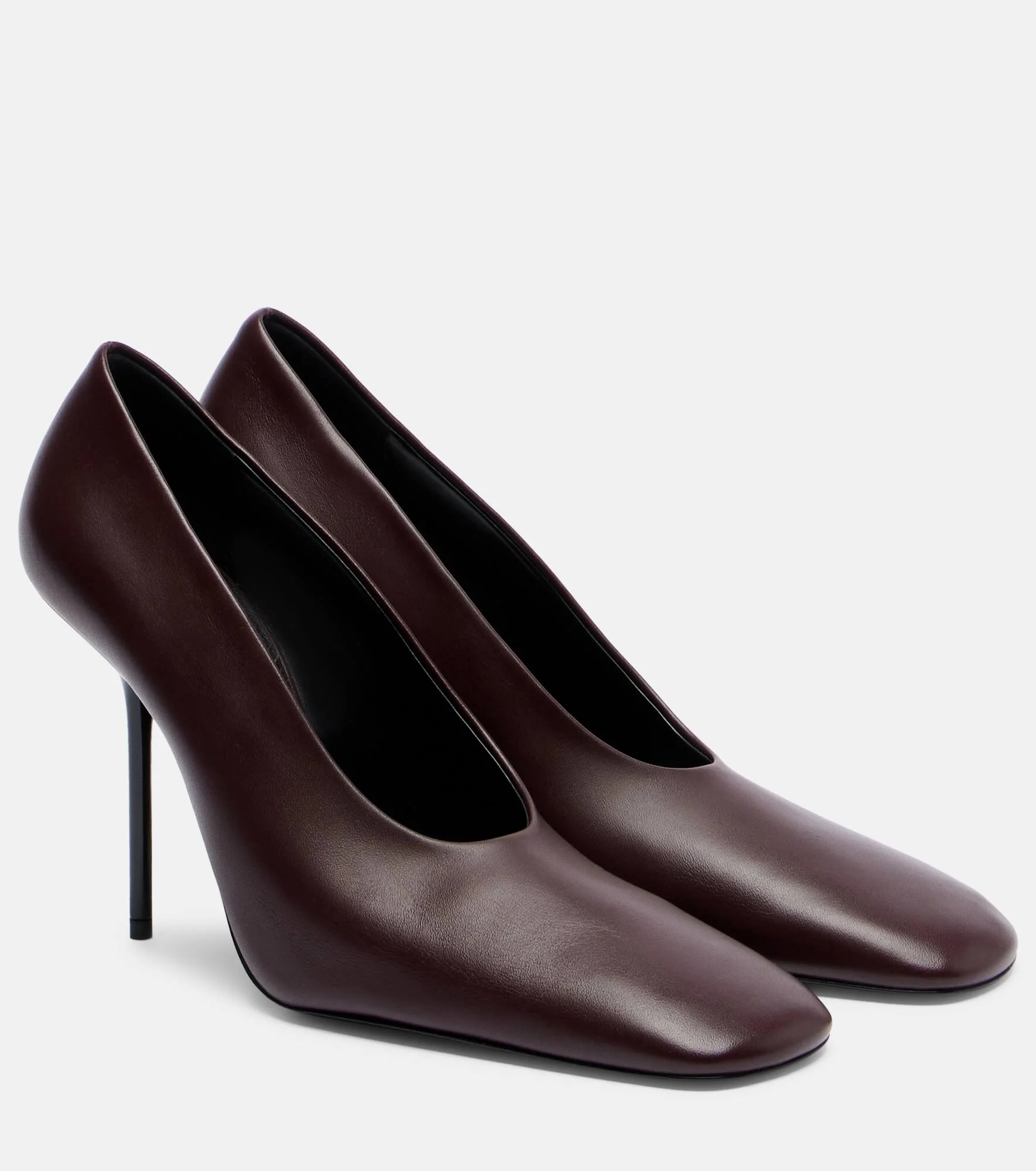 Victoria Beckham's eponymous label offers chic and understated designs that create a versatile wardrobe. Standing on 100mm stiletto heels, these burgundy pumps are made in Italy from supple leather and feature square toes. Product Details - Upper: goat leather - Lining: leather - Sole: leather insole and sole - Toe shape: square toe - Made in Italy - Includes: shoe box, dust bag - Designer color name: Burgundy - Item color: burgundy - Item number: P01101033 Size & Fit - True to size - European sizes - 10cm-4" heel (size EU 38)