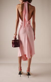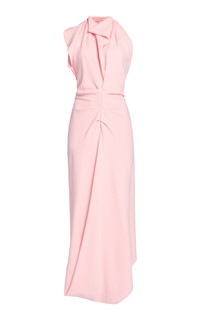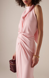 PRODUCT DETAILS - Draped neckline, sleeveless, gathered waist - Concealed zip fastening - Unlined - Composition: 50% Viscose, 47% Acetate, 3% Elastane - Color: Candyfloss - Dry clean only - Seen in the Fall/Winter '24 lookbook