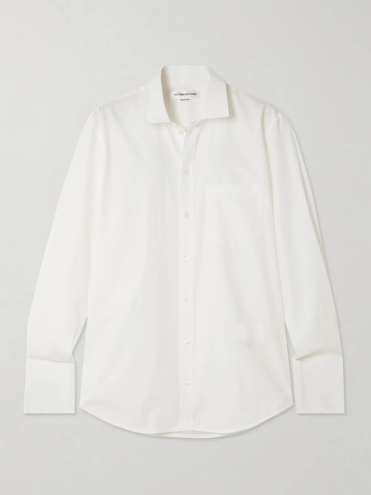 Victoria Beckham's shirt is designed with a wide tab across the back to cinch in the waist. It's made from organic cotton-poplin with a point collar and elongated cuffs. Wear yours with straight-leg pants or denim.