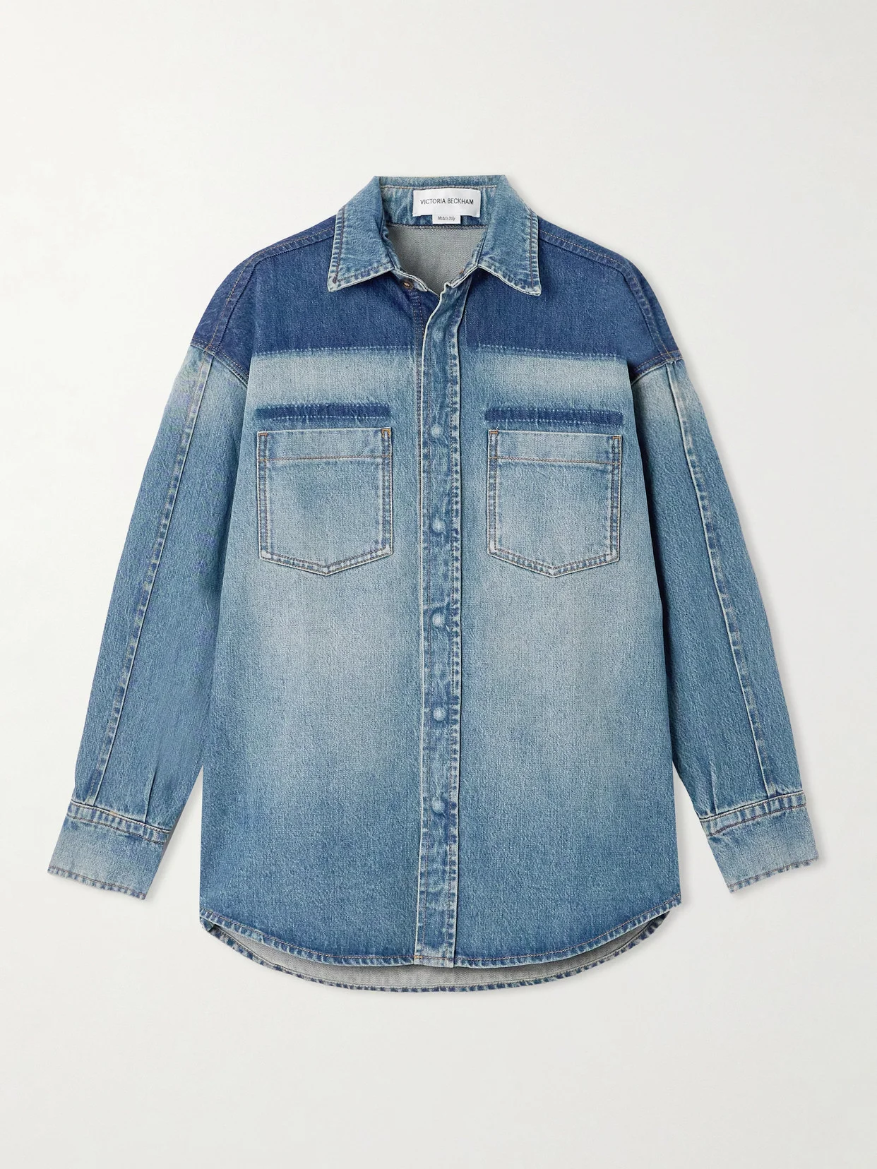 Dressing well and looking effortless is the goal of Victoria Beckham's collections. This shirt is cut from two-tone denim for an oversized profile that exudes a cool attitude. Style yours unbuttoned over a tank and team with it tailored pants.