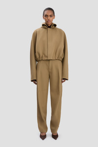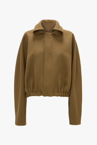 A runway highlight, the Oversized Roll Neck Bomber Jacket is characterised by this season’s signature roll-neck design. A sculptural feature, it creates a contemporary contrast with the otherwise relaxed, oversized silhouette, while its softly rounded edges bring a feminine sensibility to the look. Crafted from a heavy gabardine, it has a hip-length hemline, side-seam pockets and an elasticated waistband. Size & Fit - Designed to fit oversized. For a more fitted look, take one size down - The model height is 5'11’’/180cm and is wearing a size 6 Product Details - Soft Heavy Gabardine Bomber Jacket - Length finishes at the high hip - Roll neck collar - Front metal zip closure with B trim puller. - Side seam pockets - Hem channel with elastic in the back, herringbone ties in the front - 100% Virgin Wool - Dry clean only - Made in Lithuania