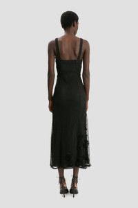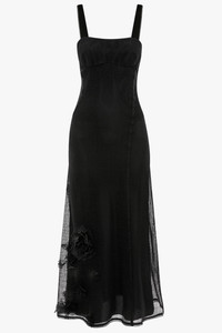 The iconic 1990s cami dress is given a fresh perspective with curved panel seams and a side-seam split. Presented in classic Black, the Panelled Cami Dress also has a mesh outer layer and a crepe de chine underlayer for added tactility. Finished with organza flower embellishments, it exudes modern femininity. Size & Fit - The model is 5'11’’/180cm and is wearing a size 6 - Fits true to size, take your normal size Product Details - Mesh cami dress - Organza flower embellishment - Crepe de chine under layer - Concealed zip with hook-and-eye closure - Side seam split - 100% Polyester - Made in UK