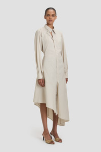 The Panelled Shirt Dress offers an elevated take on the traditional utilitarian-inspired shirt dress. Crafted from 100% cotton for breathability and comfort, the Panelled Shirt Dress has a traditional collar neckline, front-button fastening and fit-and-flare silhouette. A chest pocket and button cuff complete the look, while an embroidered Victoria Beckham logo in a contrasting thread adds an attractive finishing touch. Presented in a delicate shade of Pumice, it is a practical and polished piece of ready-to-wear. Size & Fit - The model height is 5'11"/180cm and is wearing a size 8 - Fits true to size, take your regular size Product Details - Light cotton fabric - Chest pocket - Front button fastening - Collar neckline - VB embroidery in contrast thread - Fit & Flare - 100% Cotton - Machine Wash 30C - Made in Turkey