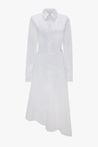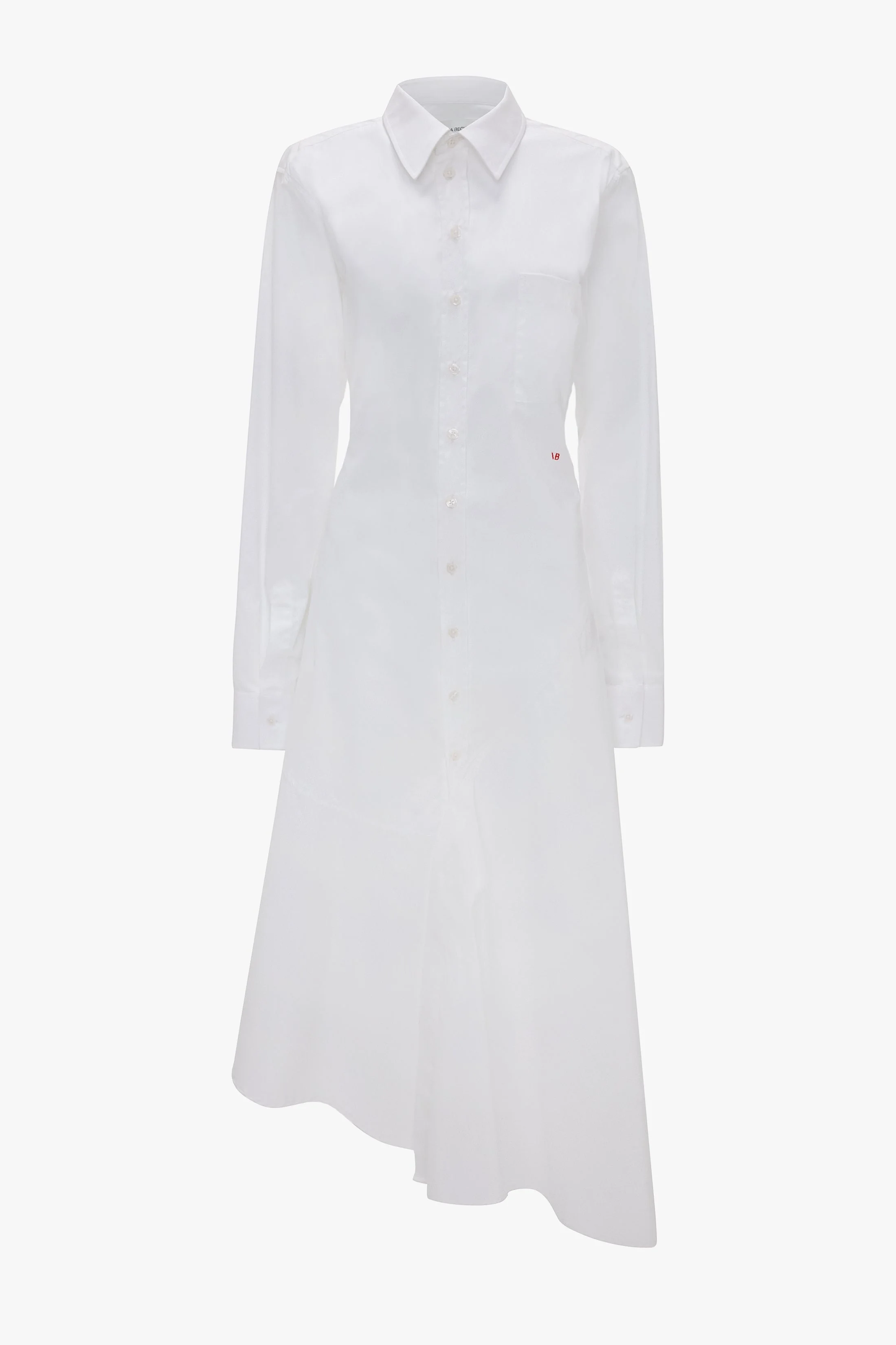 The Panelled Shirt Dress in White offers an elevated take on a wardrobe staple. Crafted from 100% cotton for breathability and comfort, it has a traditional collar neckline, front-button fastening and fit-and-flare silhouette. A chest pocket and button cuff complete the look, while a red embroidered Victoria Beckham logo adds an attractive finishing touch. Size & Fit - The model height is 5'11"/180cm and is wearing a size 8 - Fits true to size, take your regular size Product Details - Light cotton fabric - Chest pocket - Front button fastening - Collar neckline - VB embroidery in contrast thread - Fit & Flare - 100% Cotton - Machine Wash 30C - Made in Turkey