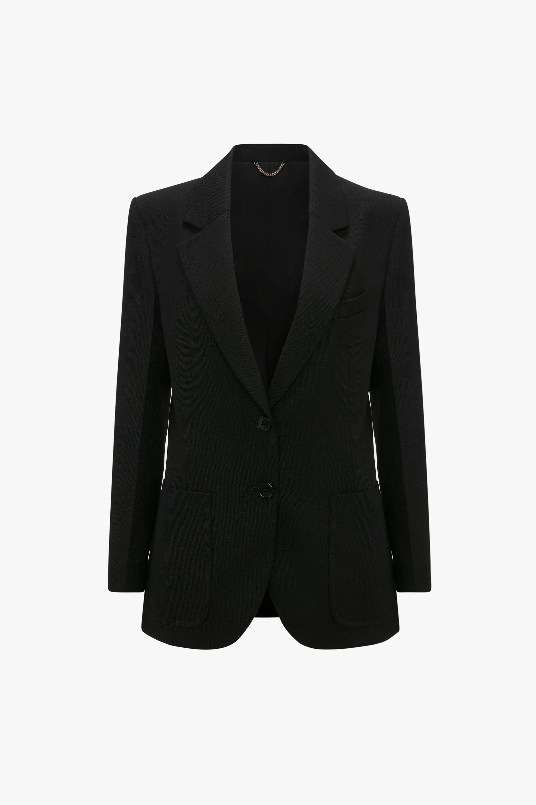 A classic shade of black imbues this classic, single-breasted Patch Pocket Jacket with modernity. Immaculately tailored for a precise fit, statement patch pockets and a single chest pocket complete the streamlined aesthetic. Size & Fit - Straight lean silhouette - Fits true to size, take your regular size - The model height is 180cm and is wearing a size 6 Product Details - Fluid Wool Blend Fabrication - Single breasted jacket - Two button fastening at the front - Interrnal chest pocket - Patch pockets at the front - 53% Polyester 43% Wool 4% Elastane - Specialised Dry Clean Only - Made in Portugal
